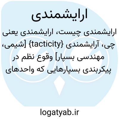 {tacticity} [شیمی، مهندسی بسپار] وقوع نظم در پیکربندی بسپارهایی که واحدهای تکرارشوندۀ آنها قابلیت ایجاد نظمی فضاشیمیایی دارند