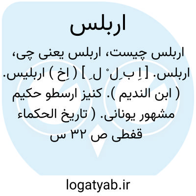 اربلس. [ اِ ب ِل ْ ل ِ ] ( اِخ ) اربلیس. ( ابن الندیم ). کنیز ارسطو حکیم مشهور یونانی. ( تاریخ الحکماء قفطی ص 32 س 19 و ص 33 س 9 ).