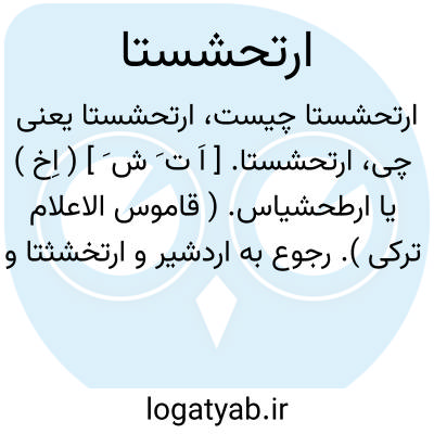 لغت نامه دهخدا ارتحشستا. [ اَ ت َ ش َ ] ( اِخ ) یا ارطحشیاس. ( قاموس الاعلام ترکی ). رجوع به اردشیر و ارتخشثتا و ارتخششتا شود.