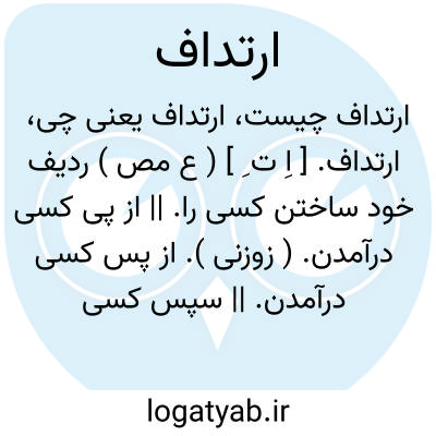 ارتداف. [ اِ ت ِ ] ( ع مص ) ردیف خود ساختن کسی را. || از پی کسی درآمدن. ( زوزنی ). از پس کسی درآمدن. || سپس کسی نشستن. ( منتهی الارب ). در پس کسی سوار شدن. در پس اسب کسی نشستن. || کسی را در پس اسپ خود نشانیدن. ( آنندراج ). بترک خود سوار کردن. || ارتداف عدو؛ از پس گرفتن دشمن را. ( منتهی الارب ).
