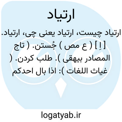 ارتیاد. [ اِ ] ( ع مص ) جُستن. ( تاج المصادر بیهقی ). طلب کردن. ( غیاث اللغات ): اذا بال احدکم فلیرتد لبوله؛ ای لیطلب مکاناً لیناً او منحدراً.