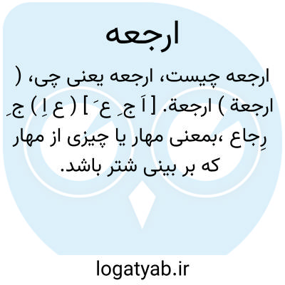 لغت نامه دهخدا ( ارجعة ) ارجعة. [ اَ ج ِ ع َ ] ( ع اِ ) ج ِ رِجاع،بمعنی مهار یا چیزی از مهار که بر بینی شتر باشد.
