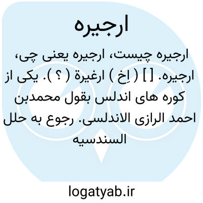 ارجیره. [ ] ( اِخ ) ارغیرة ( ؟ ). یکی از کوره های اندلس بقول محمدبن احمد الرازی الاندلسی. رجوع به حلل السندسیه ج 1 ص 40 و 76 شود.