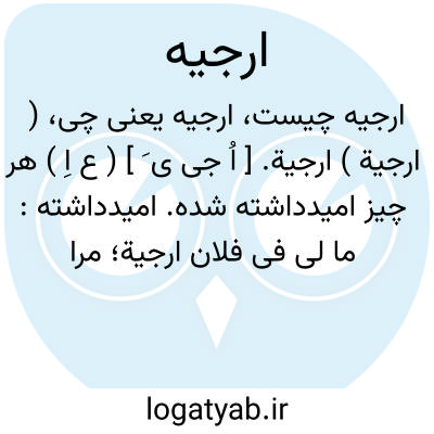 ( ارجیة ) ارجیة. [ اُ جی ی َ ] ( ع اِ ) هر چیز امیدداشته شده. امیدداشته: ما لی فی فلان ارجیة؛ مرا بفلان امیدی نیست.