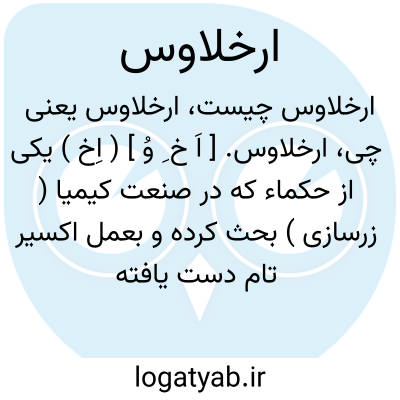 ارخلاوس. [ اَ خ ِ وُ ] ( اِخ ) یکی از حکماء که در صنعت کیمیا ( زرسازی ) بحث کرده و بعمل اکسیر تام دست یافته است. ( ابن الندیم ).