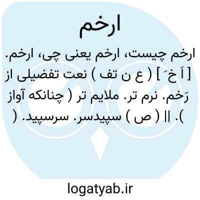 ارخم. [ اَ خ َ ] ( ع ن تف ) نعت تفضیلی از رَخم. نرم تر. ملایم تر ( چنانکه آواز ). || ( ص ) سپیدسر. سرسپید. ( دستوراللغة نطنزی ): فرس ارخم؛ اسپ سپیدسر سیاه بدن. ( منتهی الارب ). اسپ همه سرسپید. ( مهذب الاسماء ). اسپ همه سر سپید. ( مهذب الاسماء ). مؤنث: رَخْماء. ( منتهی الارب ).
