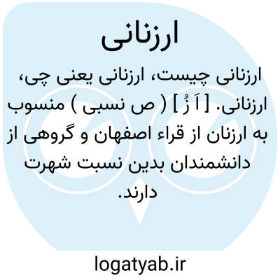 ارزنانی. [ اَ زُ ] ( ص نسبی ) منسوب به ارزنان از قراء اصفهان و گروهی از دانشمندان بدین نسبت شهرت دارند. رجوع به انساب سمعانی شود.