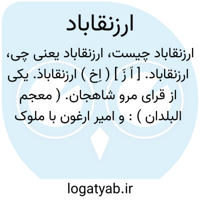 ارزنقاباد. [ اَ زَ ] ( اِخ ) ارزنقاباذ. یکی از قرای مرو شاهجان. ( معجم البلدان ): و امیر ارغون با ملوک و امرا و اصحاب در تاریخ... به ارزنقابادمرو نزول کرد. ( جهانگشای جوینی ). و امیر ارغون عمارت کوشک و باغ فرمود و اصحاب در ارزنقاباد هر کس باغ و سرای به اشارت او آغاز کردند. ( جهانگشای جوینی ).