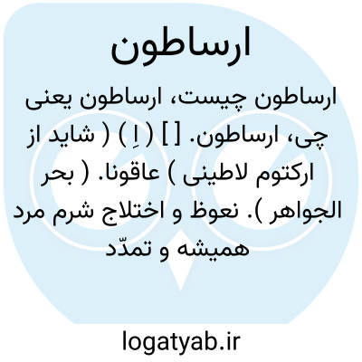 ارساطون. [ ] ( اِ ) ( شاید از ارکتوم لاطینی ) عاقونا. ( بحر الجواهر ). نعوظ و اختلاج شرم مرد همیشه و تمدّد اوعیه آب مردی.