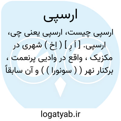 ارسپی. [ اَ رِ ] ( اِخ ) شهری در مکزیک، واقع در وادیی پرنعمت، برکنار نهر ( ( سونورا ) ) و آن سابقاً کرسی مقاطعه سونورا بود. ولی بواسطه جنگهای داخلی و تعدیات هندیان امریکا مضمحل گردید و در جوار آن آثارقدیمه و معادن بسیار است. ( ضمیمه معجم البلدان ).