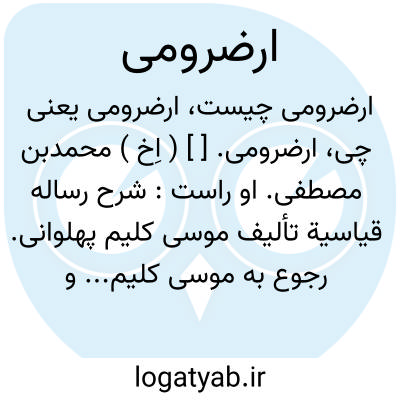 ارضرومی. [ ] ( اِخ ) محمدبن مصطفی. او راست: شرح رساله قیاسیة تألیف موسی کلیم پهلوانی. رجوع به موسی کلیم... و معجم المطبوعات شود.