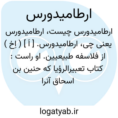 ارطامیدورس. [ اَ ] ( اِخ ) از فلاسفه طبیعیین. او راست: کتاب تعبیرالرؤیا که حنین بن اسحاق آنرا ترجمه کرده است و آن در پنج مقاله است. ( الفهرست ابن الندیم ). || در بعض لغت نامه ها گفته اند نام پیغمبری بوده است و بر اساسی نیست.