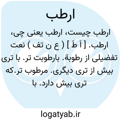 ارطب. [ اَ طَ ] ( ع ن تف ) نعت تفضیلی از رطوبة. بارطوبت تر. با تری بیش از تری دیگری. مرطوب تر.که تری بیش دارد. با تری بیشتر. ترتر. ( آنندراج ).