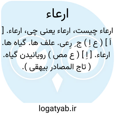 ارعاء. [ اِ ] ( ع مص ) رویانیدن گیاه. ( تاج المصادر بیهقی ). چرانیدن ستور را: ارعی اﷲ الماشیة؛ یعنی برویاند خدای علف را تا بچرد آنرا ستور. ( منتهی الأرب ). || ارعاء مکان؛ چراگاه کردن جایی را. || گوش بکسی داشتن. ( منتهی الأرب ). گوش فاداشتن.( زوزنی ). گوش فراداشتن. ( تاج المصادر بیهقی ). گوش دادن سخن کسی را. استماع. گوش بسوی چیزی داشتن. || ارعاء بر کسی؛ مهربانی بدو کردن. ( منتهی الأرب ). || بخشودن. ( منتهی الأرب ). ببخشودن. ( زوزنی ) ( تاج المصادر بیهقی ). رعایت و مرحمت کردن. || باقی داشتن. ( منتهی الأرب ). || ارعاء ارض؛ بسیارگیاه شدن آن. بسیارعلف شدن زمین. ( منتهی الأرب ). || آزرم داشتن. ( زوزنی ).