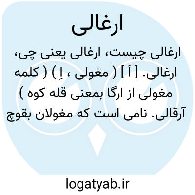 ارغالی. [ اَ ] ( مغولی، اِ ) ( کلمه مغولی از ارگا بمعنی قله کوه ) آرقالی. نامی است که مغولان بقوچ وحشی که در کوهستانهای جنوب سیبری یافت شود، دهند.