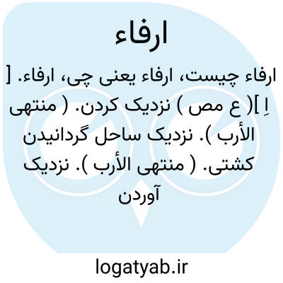 ارفاء. [ اِ ]( ع مص ) نزدیک کردن. ( منتهی الأرب ). نزدیک ساحل گردانیدن کشتی. ( منتهی الأرب ). نزدیک آوردن کشتی بکناره.( زوزنی ). کشتی را بساحل نزدیک آوردن. || پناه گرفتن به... ( منتهی الأرب ). || پناه وا کسی دادن. ( تاج المصادر بیهقی ). || مدارا کردن. || تنگ گیری کردن در معامله. || شانه کردن. || نزدیک شدن. نزدیک گردیدن. || میل کردن. ( منتهی الأرب ).