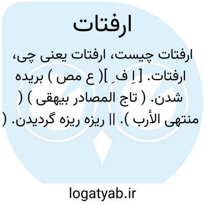 لغت نامه دهخدا ارفتات. [ اِ ف ِ ]( ع مص ) بریده شدن. ( تاج المصادر بیهقی ) ( منتهی الأرب ). || ریزه ریزه گردیدن. ( منتهی الأرب ).