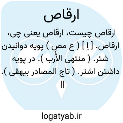ارقاص. [ اِ ] ( ع مص ) پویه دوانیدن شتر. ( منتهی الأٔرب ). در پویه داشتن اشتر. ( تاج المصادر بیهقی ). || برجهانیدن. ( تاج المصادر بیهقی ) ( زوزنی ).برجهانیدن و ببازی داشتن کودک را. ( منتهی الأرب ).