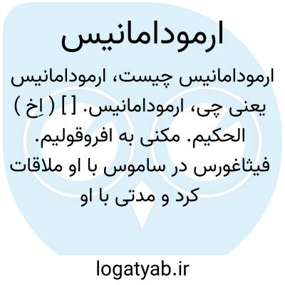ارمودامانیس. [ ] ( اِخ ) الحکیم. مکنی به افروقولیم. فیثاغورس در ساموس با او ملاقات کرد و مدتی با او ارتباط داشت. ( عیون الانباء ج 1 ص 39 ). رجوع به فقره قبل شود.