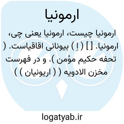 ارمونیا. [ ] ( اِ ) بیونانی اقاقیاست. ( تحفه حکیم مؤمن ). و در فهرست مخزن الادویه ( ( اریونیان ) ) آمده است.