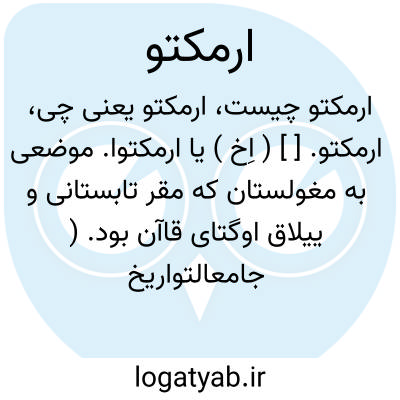 ارمکتو. [ ] ( اِخ ) یا ارمکتوا. موضعی به مغولستان که مقر تابستانی و ییلاق اوگتای قاآن بود. ( جامعالتواریخ رشیدالدین فضل اﷲ چ بلوشه ج 2 ص 49 متن و ص 27 تعلیقات فرانسه ).