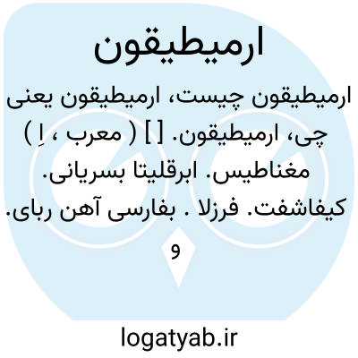 ارمیطیقون. [ ] ( معرب، اِ ) مغناطیس. ابرقلیتا بسریانی. کیفاشفت. فرزلا. بفارسی آهن ربای. و بهندی کدهک. هرباج. ( الجماهر بیرونی ص 212 و 213 ).