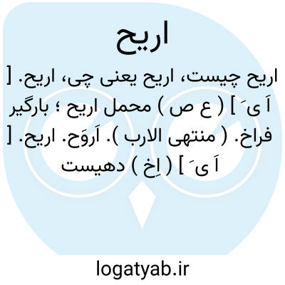 اریح. [ اَ ی َ ] ( ع ص ) محمل اریح؛ بارگیر فراخ. ( منتهی الارب ). اَروَح.