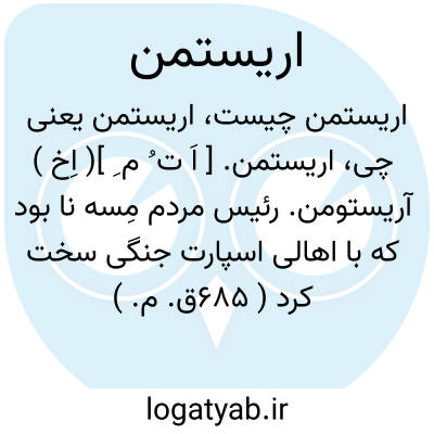 اریستمن. [ اَ ت ُ م ِ ]( اِخ ) آریستومن. رئیس مردم مِسه نا بود که با اهالی اسپارت جنگی سخت کرد ( 685ق. م. ) و مدت یازده سال برفراز کوه ( ( ایرا ) ) در قلعه ای بهمین نام بسر برد و عاقبت آنگاه که اسپارت برمسه نا تسلط یافت ناچار بتسلیم شد و به آرکادیا رفت و از آنجا نیز بجزیره رُدِس تبعید شد و بدانجا درگذشت. ( در حدود سال 671 ق. م. ) ( لغت نامه تمدن قدیم ).