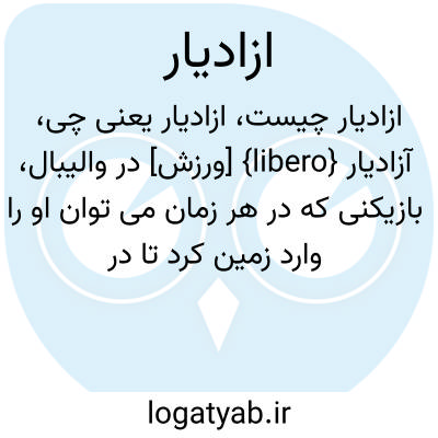 فرهنگستان زبان و ادب آزادیار{libero} [ورزش] در والیبال، بازیکنی که در هر زمان می توان او را وارد زمین کرد تا در موقعیت دفاعی بازی کند