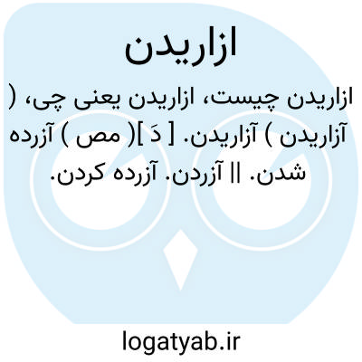 آزردن: آزاردادن، آزرده کردن، رنجه ساختن، رنجیدن، رنجه شدن، دلتنگ شدن