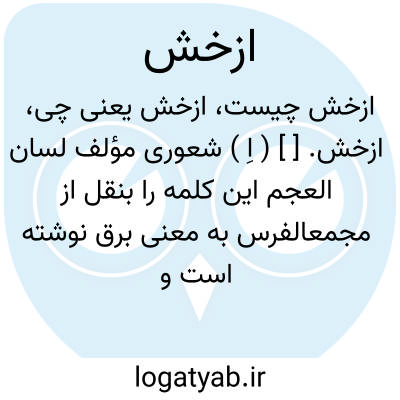 ازخش. [ ] ( اِ ) شعوری مؤلف لسان العجم این کلمه را بنقل از مجمعالفرس به معنی برق نوشته است و ظاهراً مصحف درخش یا آذرخش است. رجوع به آذرخش شود.