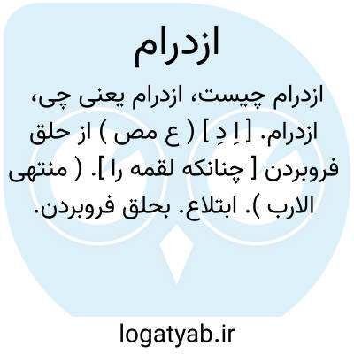 ازدرام. [ اِ دِ ] ( ع مص ) از حلق فروبردن [ چنانکه لقمه را ]. ( منتهی الارب ). ابتلاع. بحلق فروبردن.