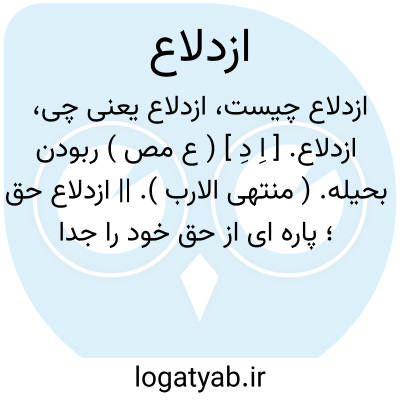 ازدلاع. [ اِ دِ ] ( ع مص ) ربودن بحیله. ( منتهی الارب ). || ازدلاع حق؛ پاره ای از حق خود را جدا کردن. ( منتهی الارب ).