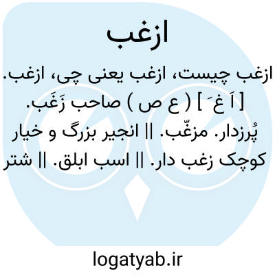 ازغب. [ اَ غ َ ] ( ع ص ) صاحب زَغَب. پُرزدار. مزغّب. || انجیر بزرگ و خیار کوچک زغب دار. || اسب ابلق. || شتر خاکسترگون. || کوه که سپیدی او بسیاهی آمیخته بود. ( منتهی الارب ). ج، زُغب. || ( ن تف ) نعت تفضیلی از مزغب. مزغب تر.