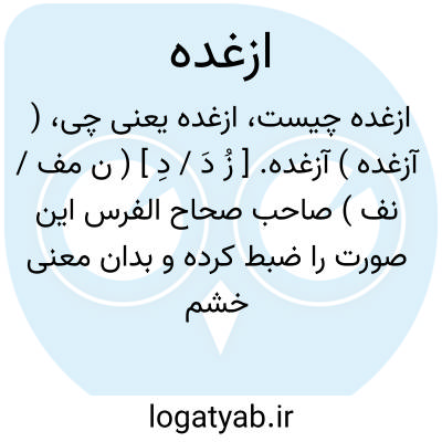 ( آزغده ) آزغده. [ زُ دَ / دِ ] ( ن مف / نف ) صاحب صحاح الفرس این صورت را ضبط کرده و بدان معنی خشم آلوده میدهد، و ظاهراً مصحف آرغده باشد.