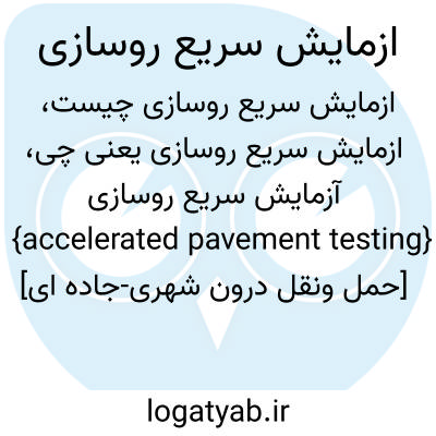 {accelerated pavement testing} [حمل ونقل درون شهری-جاده ای] آزمایش لایه های روسازی برای تعیین مقاومت و کارایی آنها با استفاده از چرخ بارگذاری شده با بار مجاز یا اندکی بیش از حد مجاز، به صورت واپایش شده و تحت تأثیر فزایندۀ عوامل تخریب و فرسایش در یک دورۀ زمانی کوتاه