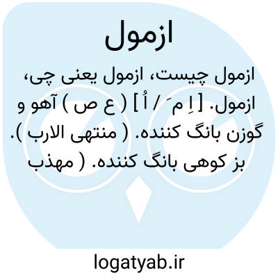 ازمول. [ اِ م َ / اُ ] ( ع ص ) آهو و گوزن بانگ کننده. ( منتهی الارب ). بز کوهی بانگ کننده. ( مهذب الاسماء ). بز کوهی آوازکننده. ازموله.
