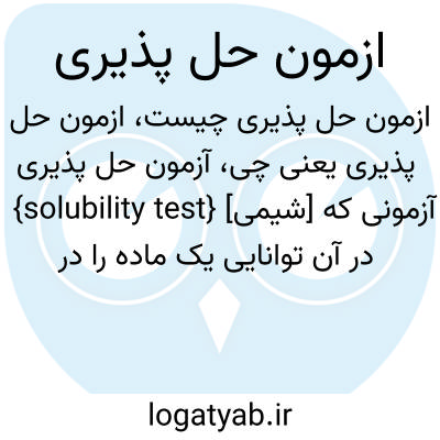 {solubility test} [شیمی] آزمونی که در آن توانایی یک ماده را در آمیخته شدن همگن با مادۀ دیگر می سنجند