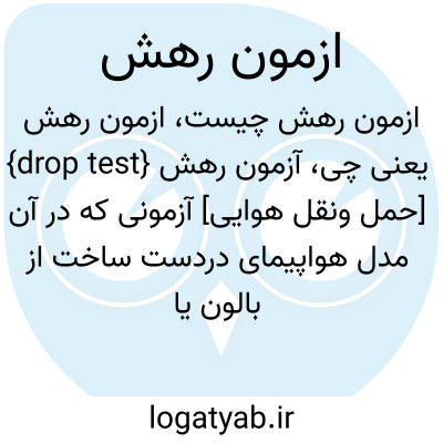 {drop test} [حمل ونقل هوایی] آزمونی که در آن مدل هواپیمای دردست ساخت از بالون یا بالگَرد یا در تونل فروچرخش برای بررسی فروچرخش یا مشخصه های دیگر رها میشود