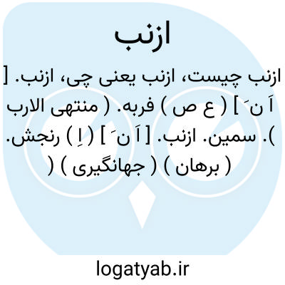 ازنب. [ اَ ن َ ] ( اِ ) رنجش. ( برهان ) ( جهانگیری ) ( شعوری ). رنجیدن.