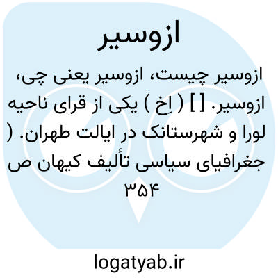 ازوسیر. [ ] ( اِخ ) یکی از قرای ناحیه لورا و شهرستانک در ایالت طهران. ( جغرافیای سیاسی تألیف کیهان ص 354 ).