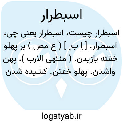 اسبطرار. [ اِ ب ِ ] ( ع مص ) بر پهلو خفته یازیدن. ( منتهی الارب ). پهن واشدن. پهلو خفتن. کشیده شدن و دراز شدن. || شتاب رفتن شتران. ( منتهی الارب ). تیز رفتن شتر. || راست و درست شدن بلاد. ( منتهی الارب ): اسبطرّ البلاد؛ استقامت. ( قطر المحیط ). || یازیدن و دراز شدن ذبیحه. ( منتهی الارب ).