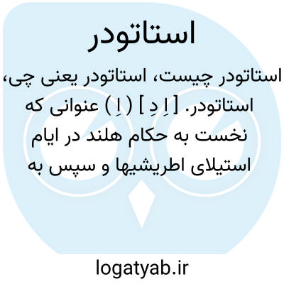 لغت نامه دهخدا استاتودر. [ اِ دِ ] ( اِ ) عنوانی که نخست به حکام هلند در ایام استیلای اطریشیها و سپس به پادشاهان اُرانژ و رؤسای جمهوری ایالات متحده ( هلند ) از مائه شانزدهم تا 1795 م. داده اند.