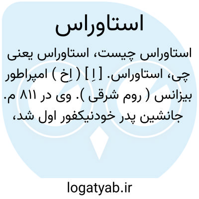 استاوراس. [ اِ ] ( اِخ ) امپراطور بیزانس ( روم شرقی ). وی در 811 م. جانشین پدر خودنیکفور اول شد، دو ماه بعد شوهر خواهر او ( میخال رانغاوی ) ویرا خلع کرد و او در همان ایام وفات یافت.