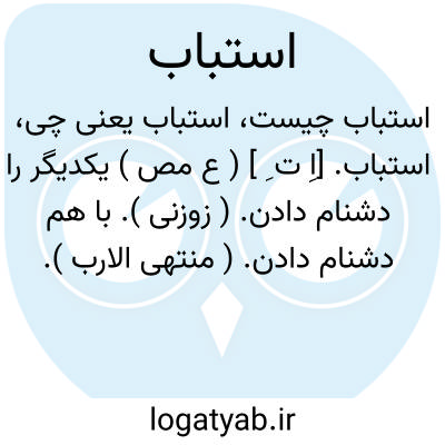لغت نامه دهخدا استباب. [اِ ت ِ ] ( ع مص ) یکدیگر را دشنام دادن. ( زوزنی ). با هم دشنام دادن. ( منتهی الارب ). بیکدیگر دشنام دادن.