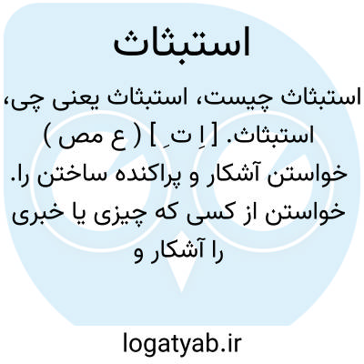 لغت نامه دهخدا استبثاث. [ اِ ت ِ ] ( ع مص ) خواستن آشکار و پراکنده ساختن را. خواستن از کسی که چیزی یا خبری را آشکار و پراکنده کند: استبثه ایاه. ( از منتهی الارب ).