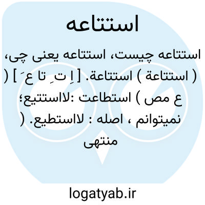 ( استتاعة ) استتاعة. [ اِ ت ِ تا ع َ ] ( ع مص ) استطاعت:لااستتیع؛ نمیتوانم، اصله: لااستطیع. ( منتهی الارب ).