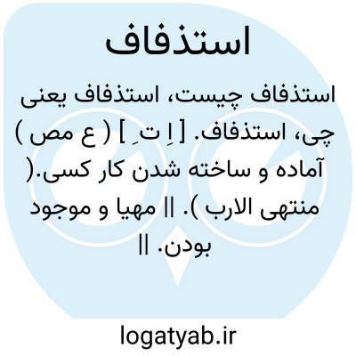 استذفاف. [ اِ ت ِ ] ( ع مص ) آماده و ساخته شدن کار کسی.( منتهی الارب ). || مهیا و موجود بودن. || به آسانی و سهولت بدست آمدن. گرفتن آنچه مهیا و موجود بود و بسهولت بدست آید. ( منتهی الارب ).