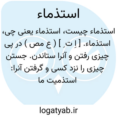 استذماء. [ اِ ت ِ ] ( ع مص ) در پی چیزی رفتن و آنرا ستاندن. جستن چیزی را نزد کسی و گرفتن آنرا: استذمیت ما عنده. ( منتهی الارب ).