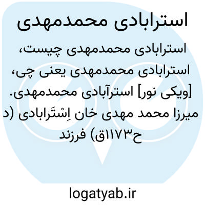 [ویکی نور] استرآبادی محمدمهدی. میرزا محمد مهدی خان اِسْتَرابادی (د ح1173ق) فرزند محمد نصیر، منشی و وقایع نگار نادر شاه افشار. استرابادی، به گفته برخی از نویسندگان معاصرش، در شعر «کوکب» تخلص می کرده است.